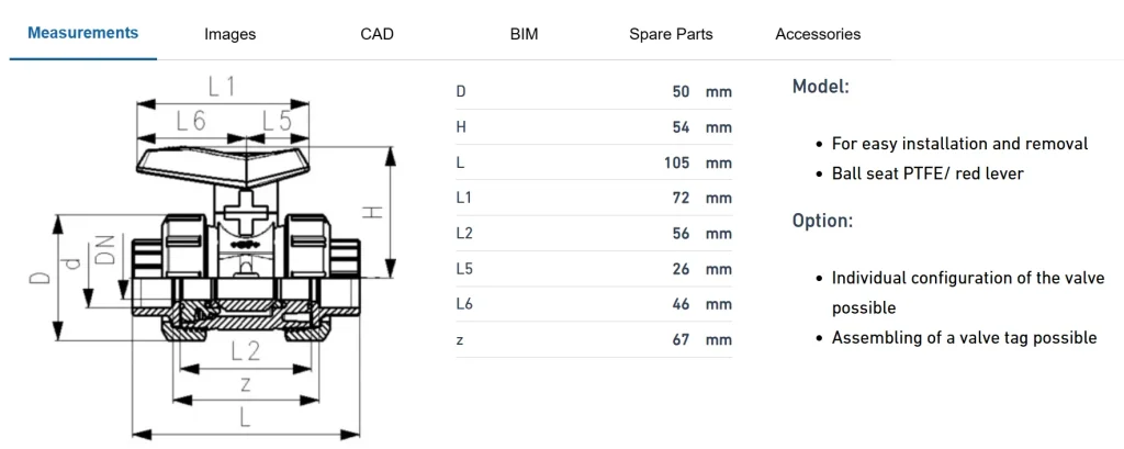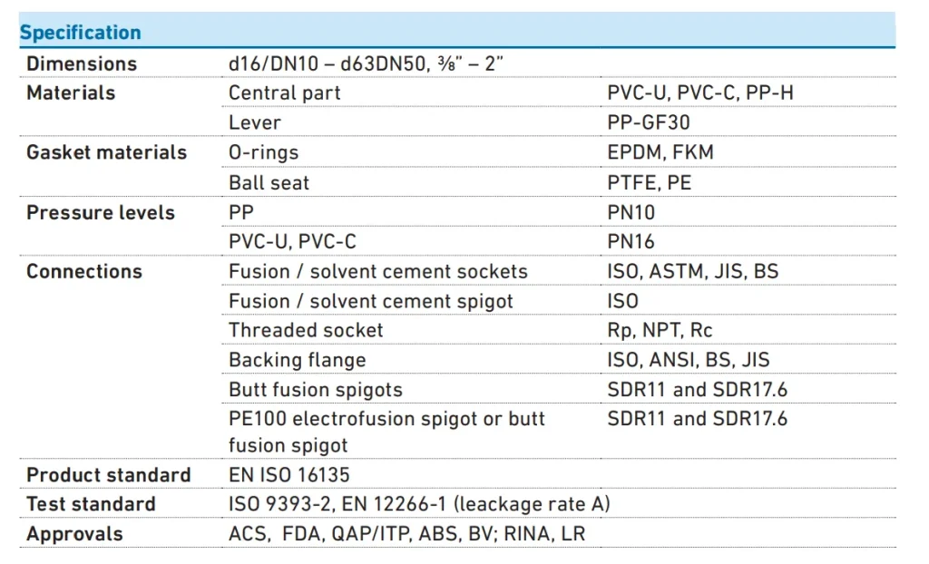 -EPDM, FKM, ball seat: PTFE, PVDF