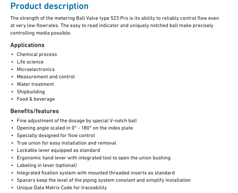 Metering ball valve type 523