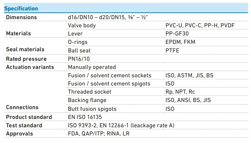 – PVC-U, PP-H, PVDF